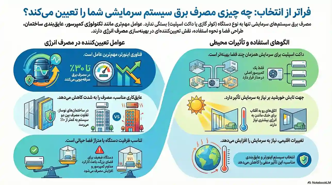 با افزایش هزینه‌های انرژی در سال‌های اخیر، انتخاب سیستم سرمایشی مناسب تنها به عملکرد خنک‌کنندگی محدود نمی‌شود؛ بلکه میزان مصرف برق نیز نقش مهمی در انتخاب کاربران ایفا می‌کند.